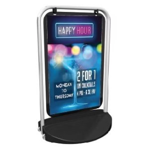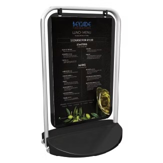 Value for money. Double sided aluminium panel with custom designed posters. Soft round styling for high pedestrian safety.